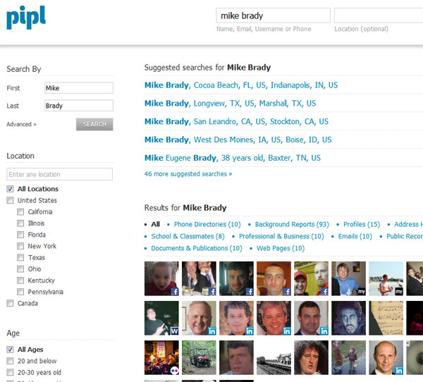 - 123people.com – Just like pipl, but with a different arrangement and sometimes different results.
