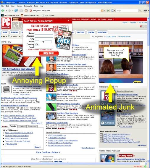 You'll also notice no "Google Adwords" or "Ads by Google" on my page. Why not? Yes it's true that as far as ads go, Google is pretty unobtrusive and not that annoying, but many people get confused about what's page content and what's a Google ad. More importantly, I can't control the content of the ads so they will often be for things I don't like. For example, on my page about ID Theft, ads for credit monitoring (which I absolutely do not support!) show up.