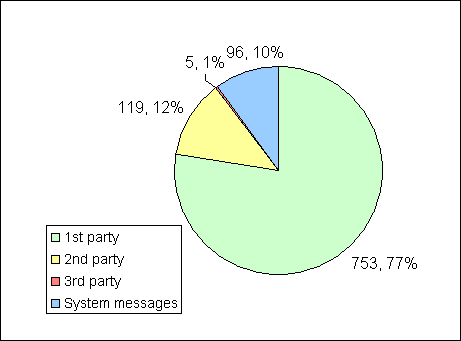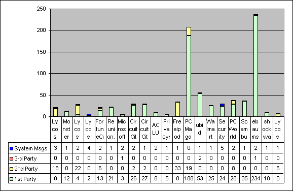 Third party e-mails are the ones we are most interested in. These are Unsolicited Commercial E-mails (UCE) that either came to a Normal account, but had nothing to do with any lists or options presented during sign up, or were sent to any non-Normal account.
