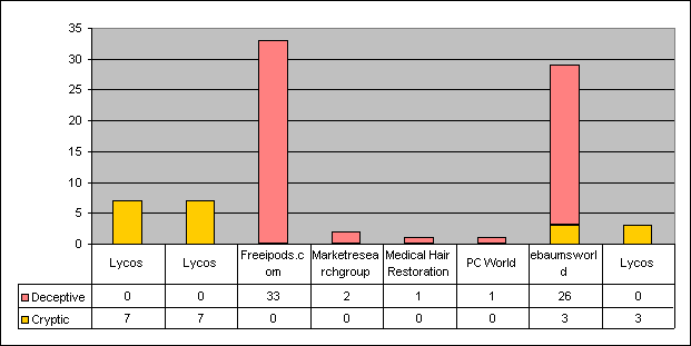 The second (and worse) major form of subject dishonesty, which I labeled Cryptic, are e-mails that are ambiguous such that you can't tell if it's legitimate or not.