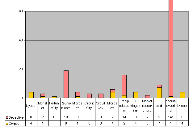 - They must be popular or well known (there were some exceptions) with particular focus on companies that advertise heavily through Spam, banners, or pop-ups