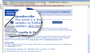 - Clicking on links to other companies within the e-mail will tell the destination company where where we came from. This could also affect the results either by encouraging the destination company to start spamming us or alert the sending company that we're suckers that open links and they should send us more mail with third party links